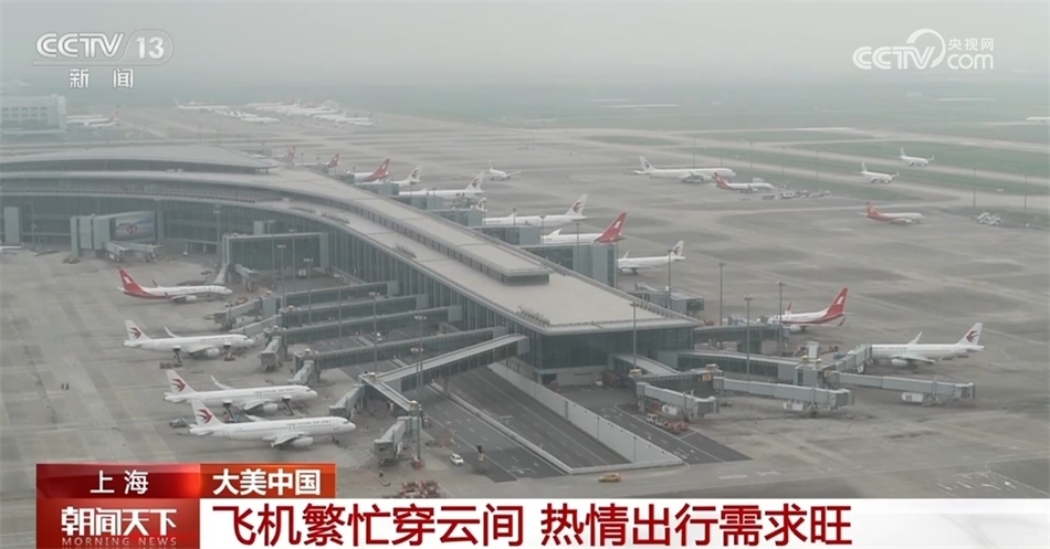 現(xiàn)在您看到的是上海浦東國(guó)際機(jī)場(chǎng),每天早上的8點(diǎn)到9點(diǎn)是航班進(jìn)出港高峰,平均約42秒就有一個(gè)航班起降。今年中秋、國(guó)慶“雙節(jié)”疊加,出行需求旺盛,8天假期,預(yù)計(jì)浦東機(jī)場(chǎng)航班量1.1萬(wàn)架次,客流量158.5萬(wàn)人次。