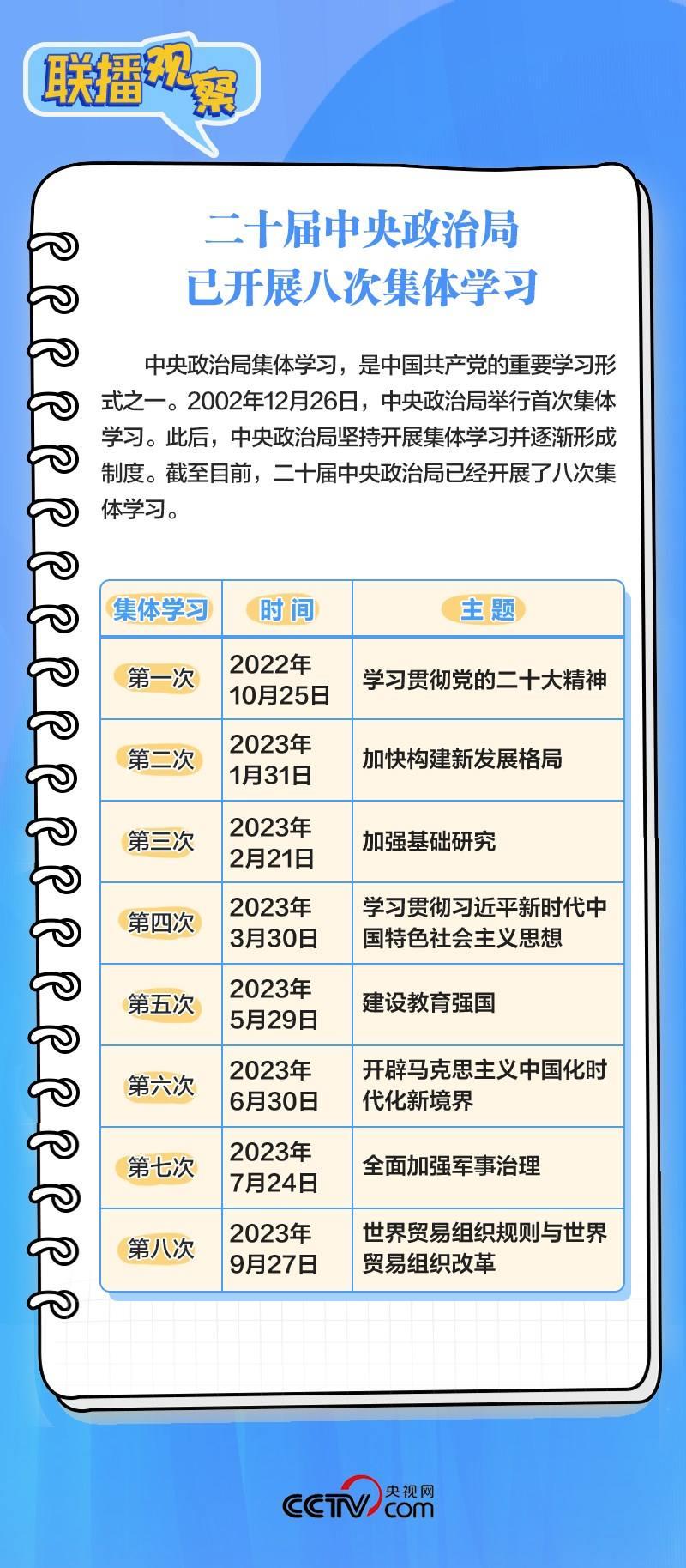 9月27日,二十屆中央政治局進(jìn)行第八次集體學(xué)習(xí),學(xué)習(xí)的主題是“世界貿(mào)易組織規(guī)則與世界貿(mào)易組織改革”。中央政治局的同志認(rèn)真聽取了專家講解,并進(jìn)行了討論。習(xí)近平總書記在聽取講解和討論后發(fā)表了重要講話。