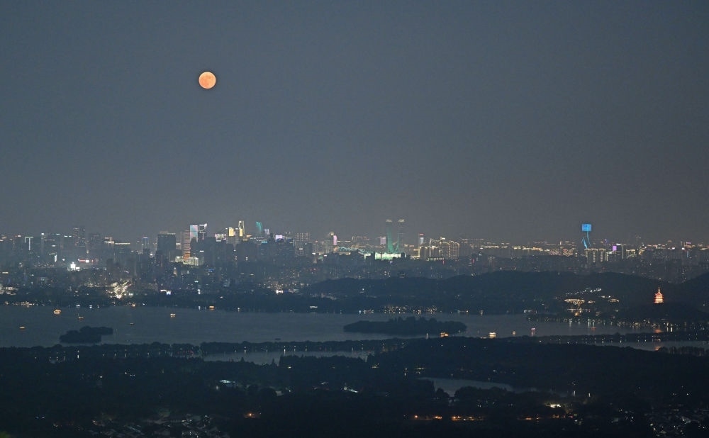 這是中秋當(dāng)晚拍攝的杭州西湖