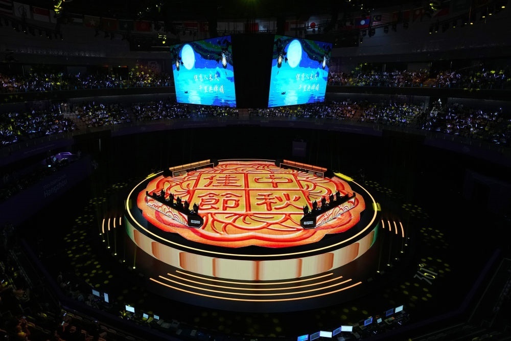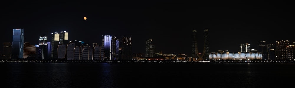 這是中秋當(dāng)晚拍攝的杭州奧體中心