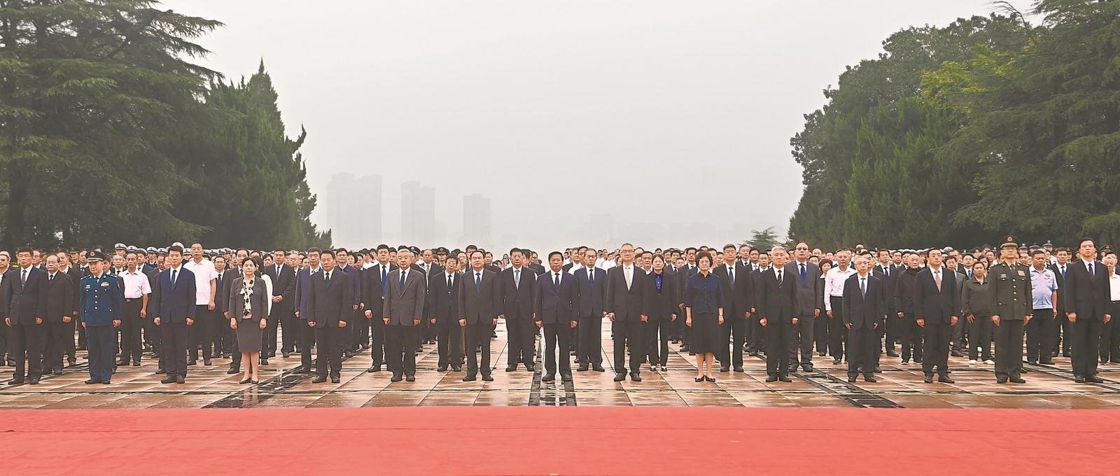9月25日,冠軍中國(guó)隊(duì)選手李越宏(左三)、劉楊攀(左一)、王鑫杰(右二)在男子25米手槍速射團(tuán)體頒獎(jiǎng)儀式上向亞軍韓國(guó)隊(duì)致意。