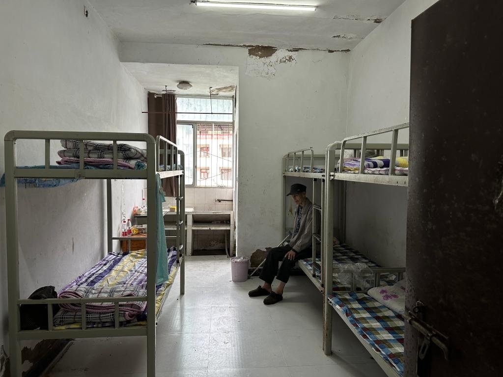 太白西村4組村民譚建和老爺爺行動(dòng)不便,坐在鋪著干凈格子床單的宿舍床上望向窗外。“前天下午,社區(qū)的車來接的我和老伴,安置點(diǎn)吃喝都好,宿舍住起來也挺舒服。兒子們擔(dān)心我,他們過不來,一天就打好幾通電話,我說都好著呢、好著呢?!弊T爺爺說。