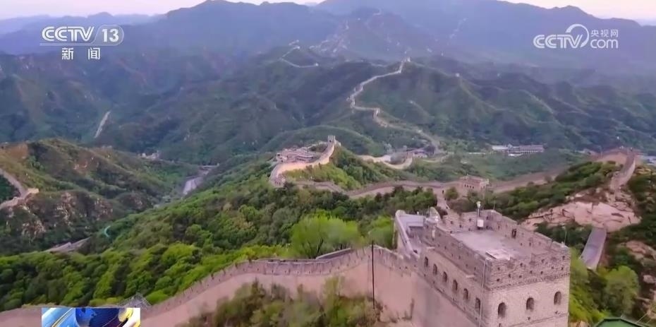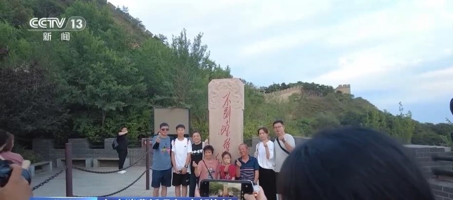 乘坐纜車幾分鐘后,記者就抵達(dá)了八達(dá)嶺長(zhǎng)城的南四樓,長(zhǎng)城的壯麗景象盡收眼底。伴隨著夕陽余暉,游客們俯瞰長(zhǎng)城隨山巒起伏,很多人在“不到長(zhǎng)城非好漢”的標(biāo)記處打卡拍照。