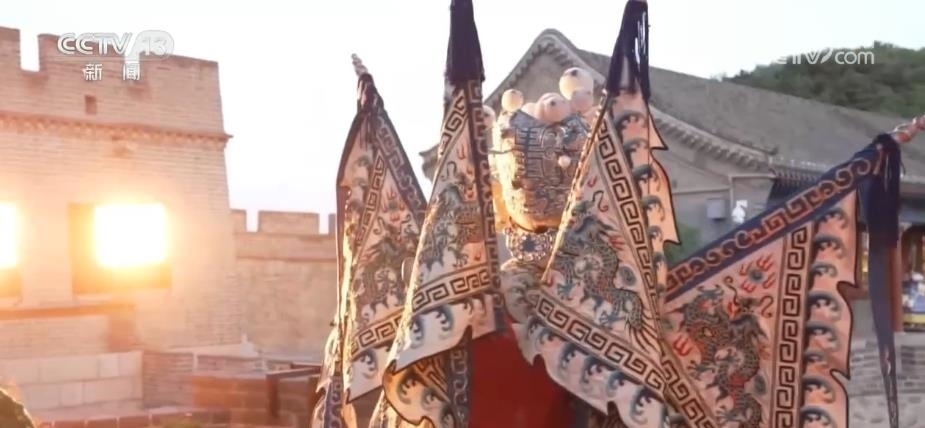 除了觀賞之外,八達(dá)嶺長(zhǎng)城還為游客提供了豐富的消費(fèi)體驗(yàn)。在文化街區(qū)里,正在上演《夢(mèng)回長(zhǎng)城,八方來鶴》為主題的演出,游客們可以和京劇、地方歌舞的表演者互動(dòng)。絢爛的燈光表演則為古老的長(zhǎng)城增添了不少現(xiàn)代感與時(shí)尚感。穿上漢服,買一面國(guó)旗,品嘗一下長(zhǎng)城的文創(chuàng)雪糕,市集小店里洋溢著濃濃的煙火氣。