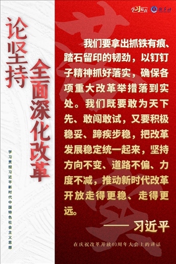 實(shí)現(xiàn)新時(shí)代新征程的目標(biāo)任務(wù),要把全面深化改革作為推進(jìn)中國(guó)式現(xiàn)代化的根本動(dòng)力,作為穩(wěn)大局、應(yīng)變局、開新局的重要抓手,把準(zhǔn)方向、守正創(chuàng)新、真抓實(shí)干,在新征程上譜寫改革開放新篇章。