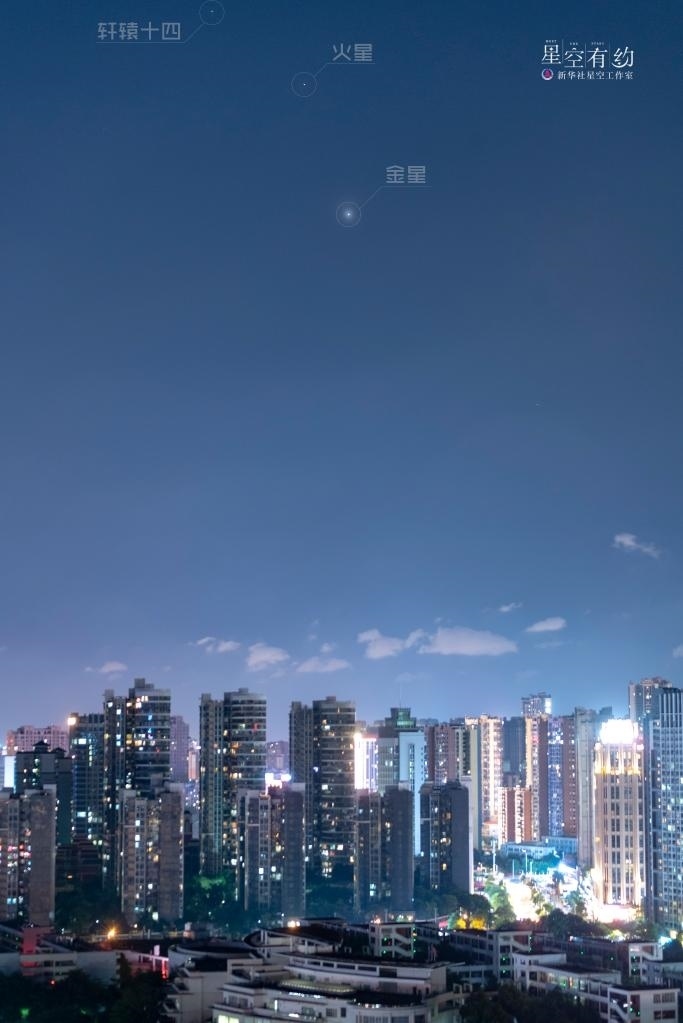 本次相合,火星與軒轅十四最近時(shí)僅有0.7度,就比一個(gè)滿月視直徑(約為0.5度)大一點(diǎn),不過受日光影響,無法看到它們相距最近時(shí)的情景。好在當(dāng)天20時(shí)左右,兩星近距離爭輝的場景在漸黑的暮色中依然會(huì)呈現(xiàn),感興趣的公眾可以嘗試觀測。