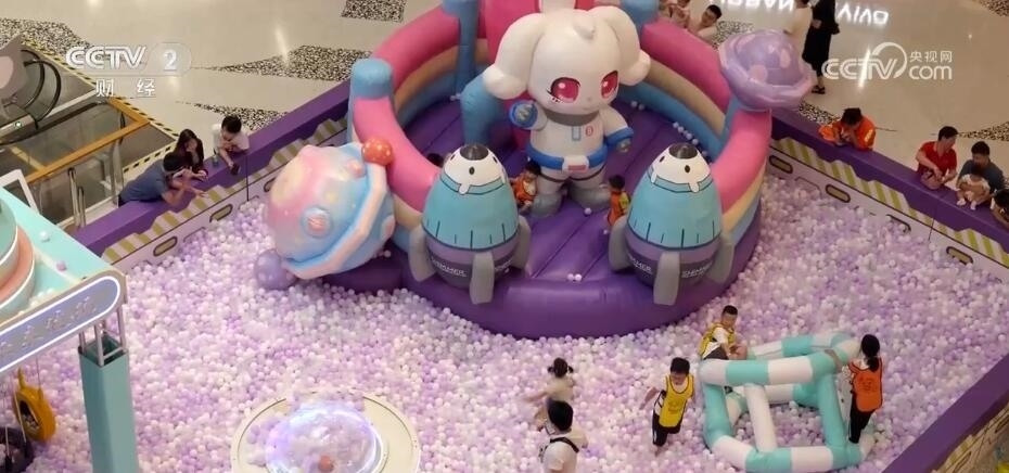 上海某商場運營經(jīng)理 趙佳麗:我們會在暑假檔的時候,在中庭引入一些比較熱門的IP(知識產(chǎn)權(quán))游玩設施。另外,因為三樓是兒童業(yè)態(tài),所以全年都會安排一些固定的互動點來供周邊的家庭游玩。