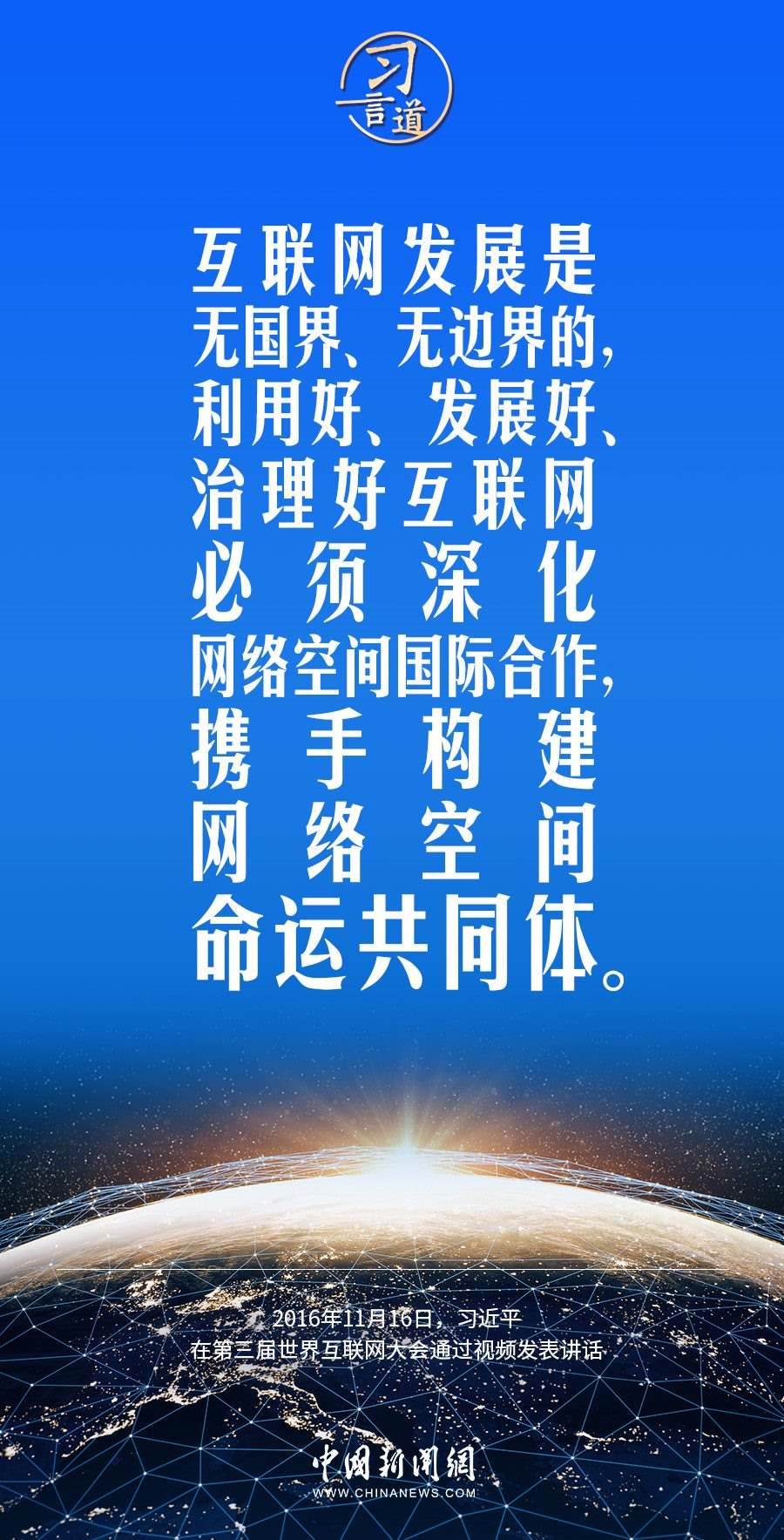 習(xí)近平總書記高度重視網(wǎng)絡(luò)空間國際合作,多次作出重要論述,強(qiáng)調(diào)要加快構(gòu)建網(wǎng)絡(luò)空間命運(yùn)共同體。