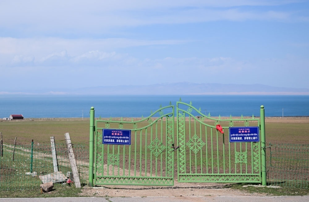 對(duì)此,青海省于2022年對(duì)私設(shè)“景點(diǎn)”亂象開展專項(xiàng)整治。記者日前在青海湖沿岸的海南藏族自治州共和縣、海北藏族自治州剛察縣和海晏縣走訪看到,昔日熱鬧的私設(shè)“景點(diǎn)”已被取締,牧民自家草場(chǎng)圍欄的鐵門入口處也沒有攬客現(xiàn)象。