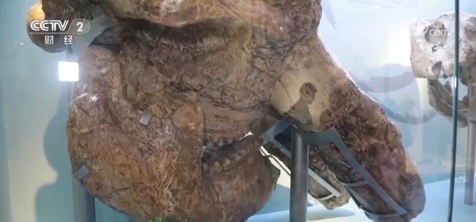 在古哺乳動(dòng)物展廳,還陳列著另外一個(gè)明星展品——一具大象的頭骨。這也是迄今為止我國體型最大、保存最完整的劍齒象化石。