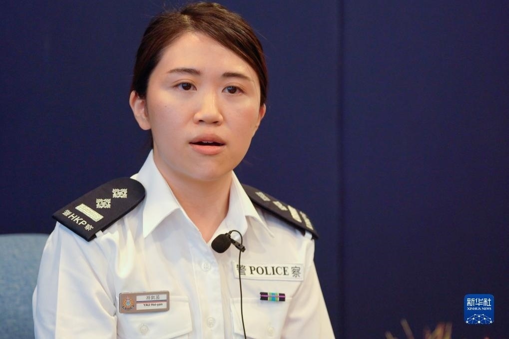 香港警務(wù)處支援科高級督察游凱茵接受采訪(4月19日攝)。新華社記者 龍鏡伊 攝