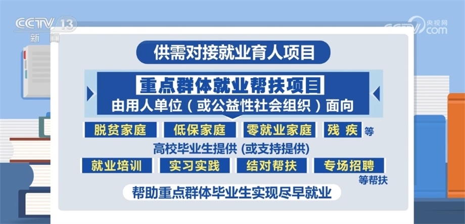 供需對接就業(yè)育人項目分為定向人才培養(yǎng)培訓(xùn)、就業(yè)實踐實習(xí)基地建設(shè)、人力資源提升、重點領(lǐng)域校企合作、重點群體就業(yè)幫扶五類。