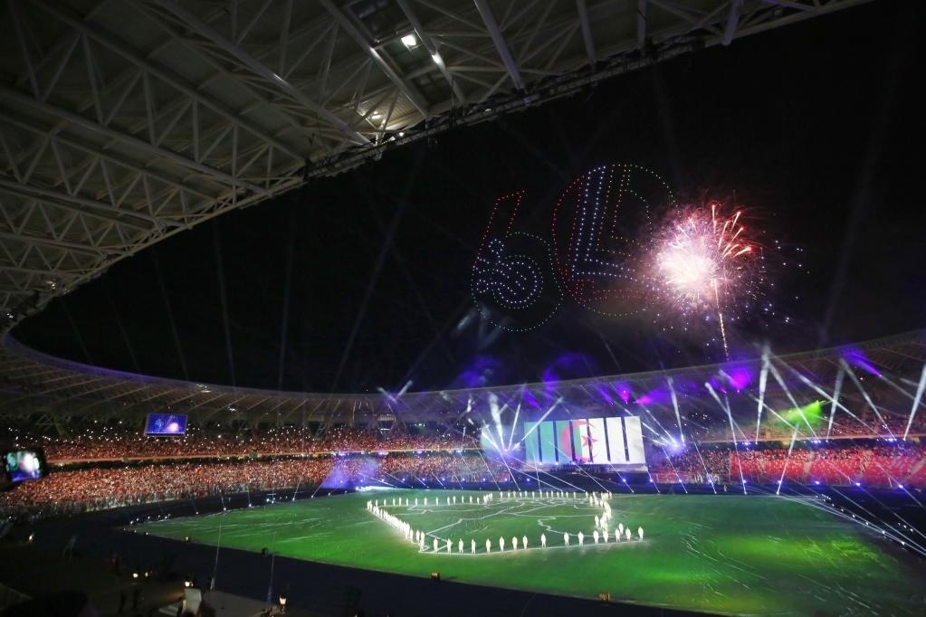 第19屆地中海運(yùn)動(dòng)會(huì)開幕式在中國企業(yè)承建的阿爾及利亞奧蘭奧林匹克體育場舉行。