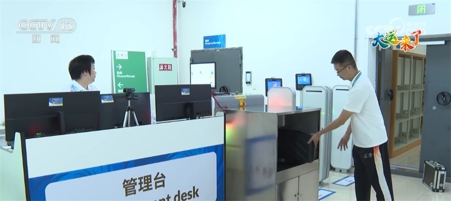 總臺(tái)記者 王勝東:我現(xiàn)在就來到了射擊場(chǎng)館非常重要的一個(gè)區(qū)域——槍彈庫,這里通過人臉識(shí)別、芯片識(shí)別和這臺(tái)X光機(jī),共同組成了一套安檢系統(tǒng),可以確保教練員和運(yùn)動(dòng)員在人、槍、彈分離的安全前提下快速、有效地通關(guān)、出入庫。
