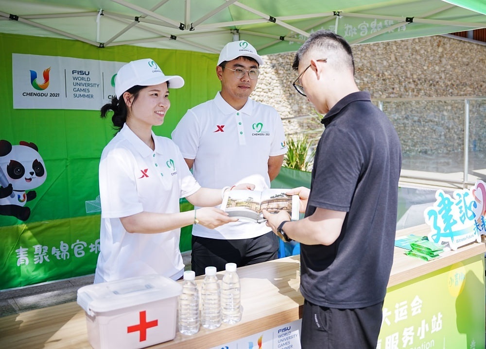 成都的大街小巷,現(xiàn)在隨處可見大運(yùn)會(huì)元素和標(biāo)識(shí)景觀。其中,志愿服務(wù)小站是一道獨(dú)特的風(fēng)景線。28歲的志愿者張思宇這幾天正為來往游客提供咨詢等服務(wù)。