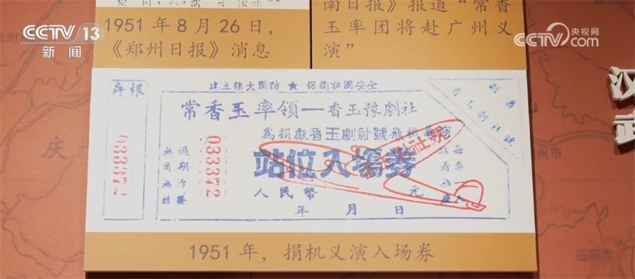 從1951年8月到1952年2月,香玉劇社行程萬里,義演了170多場,從劇社成員到普通觀眾,大家踴躍捐獻(xiàn),在半年的時間里實現(xiàn)了義演募捐15.2億多人民幣(舊幣)的計劃,順利完成了向中國人民志愿軍捐獻(xiàn)戰(zhàn)斗機的愛國行動。
