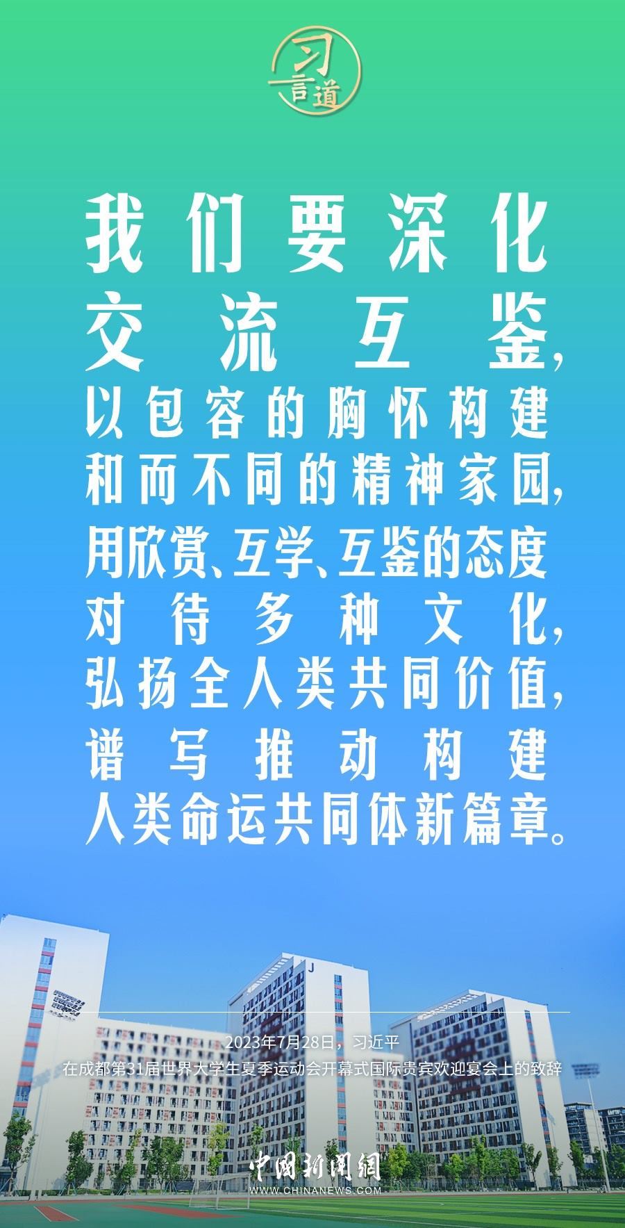 7月28日中午,國家主席習(xí)近平和夫人彭麗媛在四川省成都市金牛賓館舉行宴會,歡迎出席成都第31屆世界大學(xué)生夏季運動會開幕式的國際貴賓。習(xí)近平發(fā)表致辭稱——