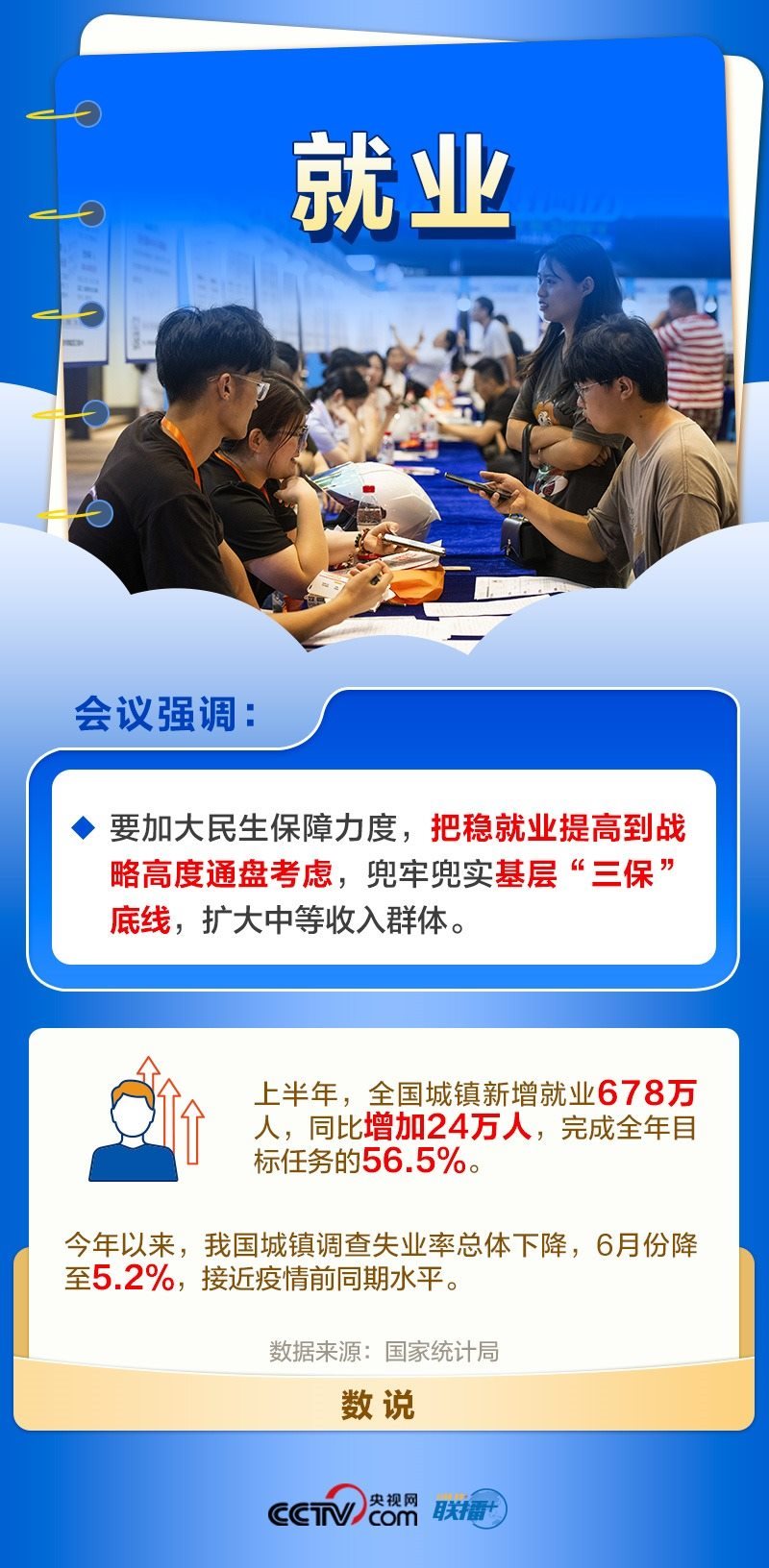 就業(yè)是最大的民生,也是最基本的民生。黨中央一直高度關(guān)注就業(yè)形勢(shì)。今年以來(lái),各地區(qū)各部門多措并舉穩(wěn)存量、擴(kuò)增量、提質(zhì)量、兜底線,落實(shí)落細(xì)就業(yè)優(yōu)先政策,完善公共就業(yè)服務(wù)。