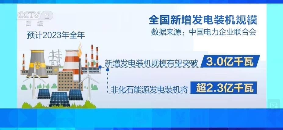 據(jù)預計,2023年全年,全國新增發(fā)電裝機規(guī)模有望突破3.0億千瓦,其中,非化石能源發(fā)電裝機將超過2.3億千瓦。到2023年底,全國發(fā)電裝機容量預計將達到28.6億千瓦,同比增長11.5%左右。其中,并網風電和太陽能發(fā)電合計裝機容量將達到9.6億千瓦,占總裝機的三分之一。