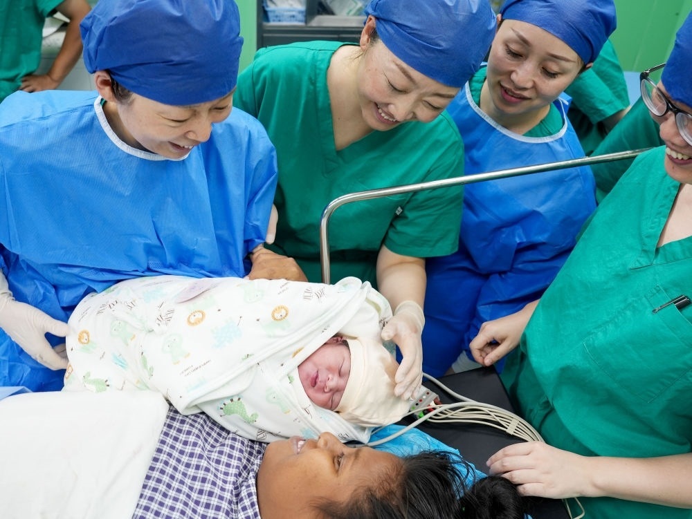 中國海軍“和平方舟”號醫(yī)院船在基里巴斯為29歲的塔拉瓦居民德阿瑞接生了一名“和平寶寶”(2023年7月16日攝)。新華社發(fā)(劉偉 攝)