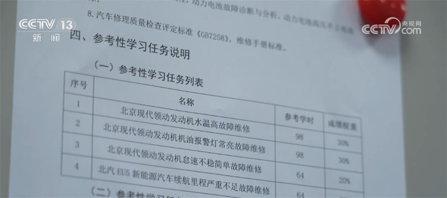 面對龐大的售后維修市場,各家院校先后與企業(yè)展開深度合作,對油轉電的技師進行培訓和技能認定,通過企業(yè)新型學徒制等多種方式破解人才短缺困境。截至目前,北京市工業(yè)技師學院已為多家企業(yè)代培近5000名新能源技師。在學校的車間辦公區(qū)里,記者看到了一張針對不同品牌車型而設置的課程表。