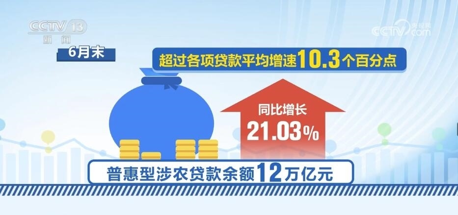 上半年,涉農(nóng)貸款余額也保持較快增長(zhǎng)。6月末,全國(guó)涉農(nóng)貸款余額54.64萬(wàn)億元,同比增長(zhǎng)16.0%。其中,普惠型涉農(nóng)貸款余額12萬(wàn)億元,同比增長(zhǎng)21.03%,超過(guò)各項(xiàng)貸款平均增速10.3個(gè)百分點(diǎn)。