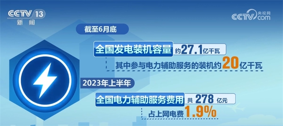 電力輔助服務是指為維護電力系統(tǒng)安全穩(wěn)定運行、保障電能質量、促進新能源消納,由市場運營機構統(tǒng)一組織采購調用的調峰、調頻、備用等系統(tǒng)調節(jié)服務。截至6月底,全國發(fā)電裝機容量約27.1億千瓦,其中參與電力輔助服務的裝機約20億千瓦。2023年上半年,全國電力輔助服務費用共278億元,占上網電費1.9%。