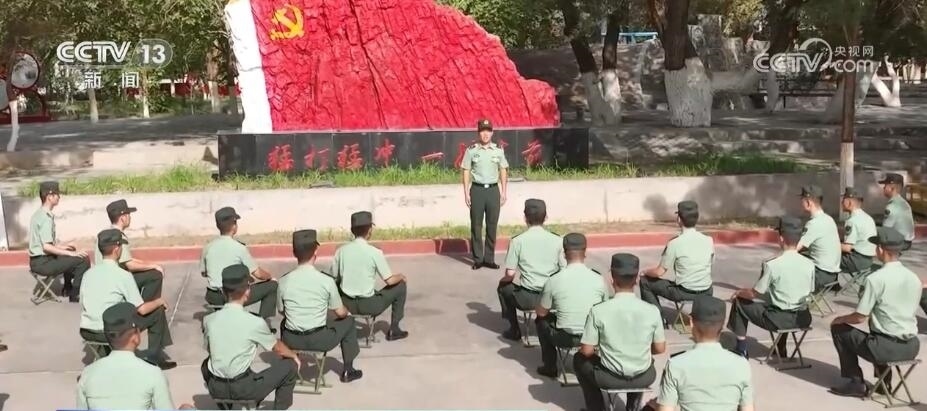 八一建軍節(jié)當天,新疆軍區(qū)某紅軍團組織升國旗儀式,官兵們整齊列隊向國旗行軍禮。升旗儀式結(jié)束后,部隊在營區(qū)內(nèi)“黨旗山”下為部分官兵頒發(fā)衛(wèi)國戍邊紀念章,以此表彰他們對維護祖國繁榮作出的貢獻。