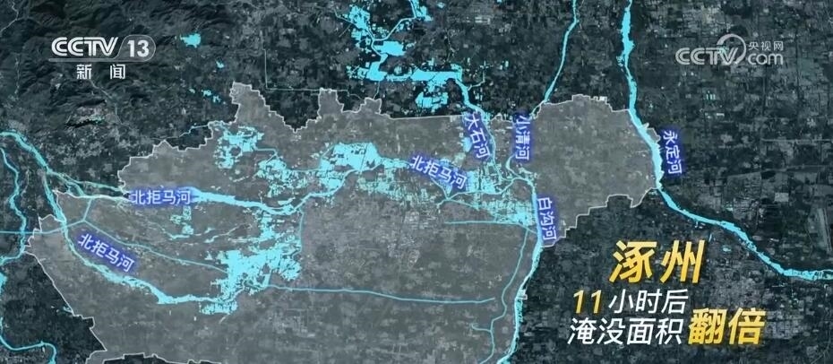 涿州大水牽動(dòng)無數(shù)人的心。3天3夜的暴雨,降水量超400毫米。利用高分三號衛(wèi)星獲取的雷達(dá)數(shù)據(jù),我們將地面水域提取出來,昔日六條河流交匯的平原腹地變成了一片澤國。