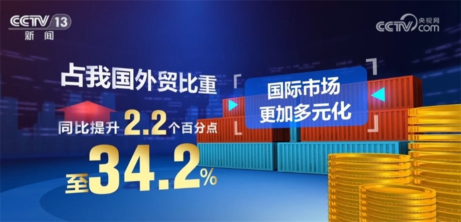 我國對“一帶一路”沿線國家進(jìn)出口8.06萬億元,同比增長7.4%,占我國外貿(mào)比重同比提升2.2個(gè)百分點(diǎn)至34.2%,國際市場更加多元化。