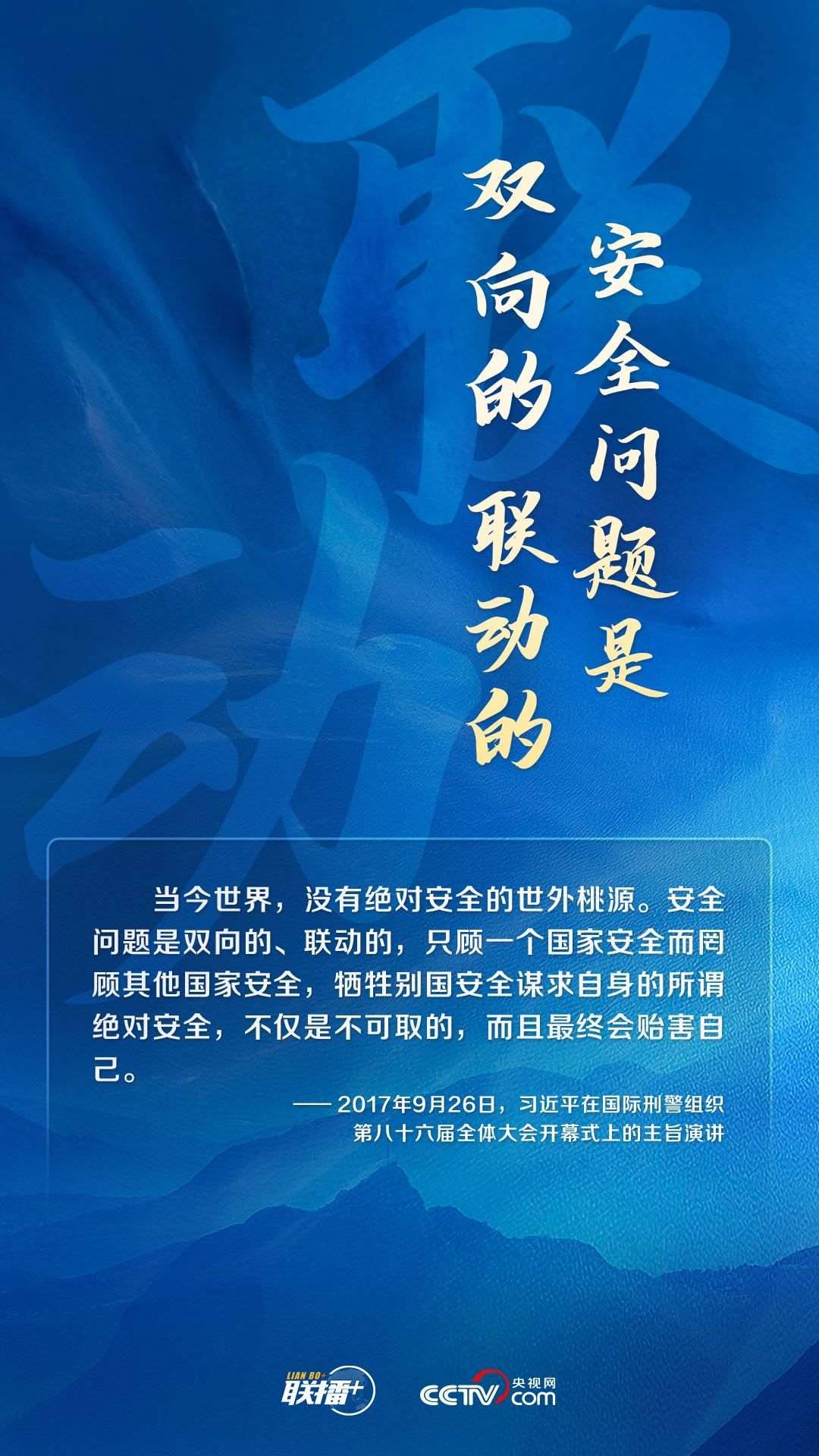 “治國(guó)常富,而亂國(guó)常貧?!毖胍暰W(wǎng)《聯(lián)播+》特推出海報(bào),與您一同學(xué)習(xí)習(xí)主席關(guān)于全球安全的重要論述。