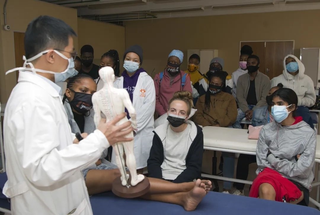 胡紫景在南非約翰內(nèi)斯堡大學(xué)上針灸課。(受訪者供圖)
