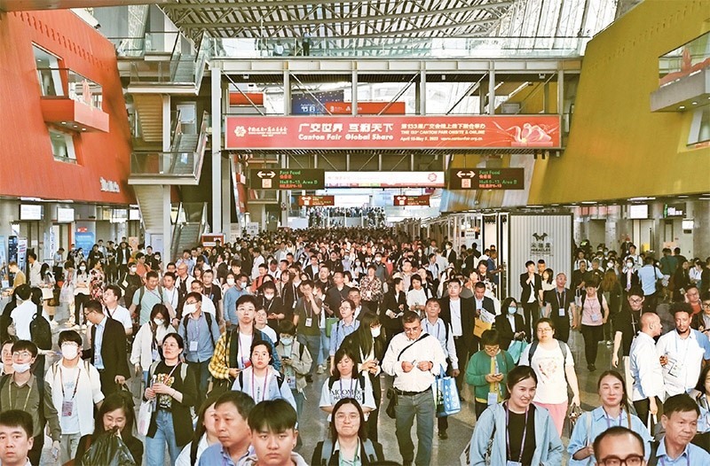 第133屆中國(guó)進(jìn)出口商品交易會(huì)(廣交會(huì))線下展于2023年4月15日至5月5日分3期舉辦,同時(shí)線上平臺(tái)全年常態(tài)化運(yùn)營(yíng)。本屆廣交會(huì)展覽面積、參展企業(yè)數(shù)量均創(chuàng)歷史新高,吸引220多個(gè)國(guó)家和地區(qū)的數(shù)十萬采購(gòu)商報(bào)名參會(huì)。圖為4月26日拍攝的廣交會(huì)現(xiàn)場(chǎng)。 中新社記者 陳楚紅/攝