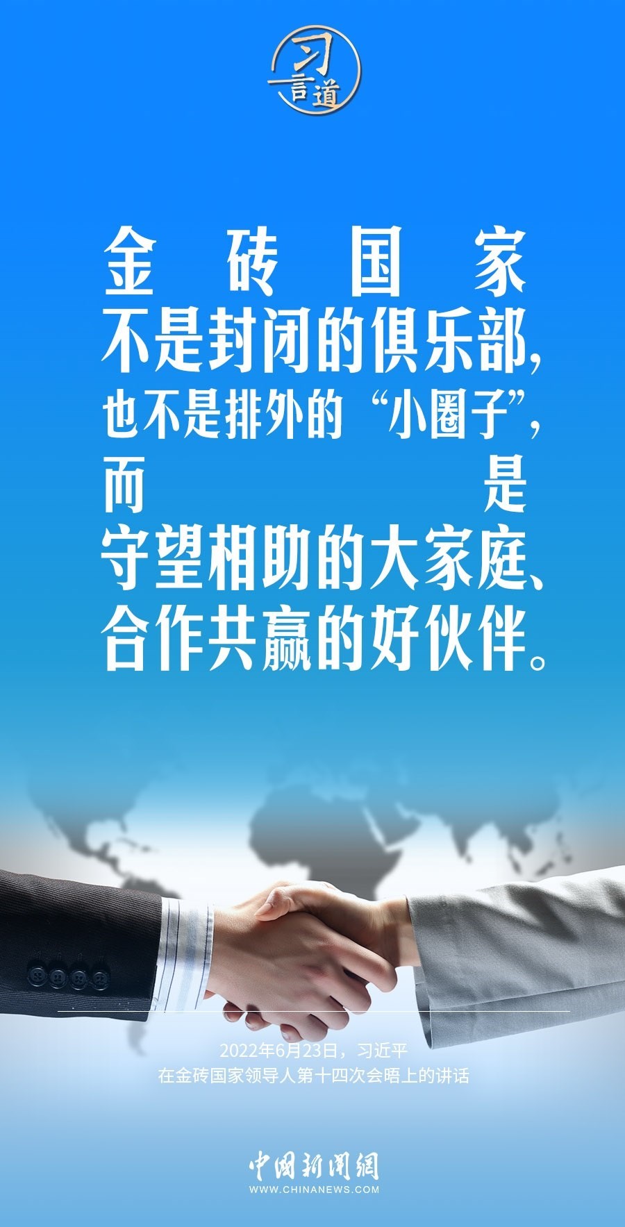中國國家主席習近平將于8月21日至24日出席在南非約翰內(nèi)斯堡舉行的金磚國家領(lǐng)導人第十五次會晤并對南非進行國事訪問。對于金磚國家合作機制,習近平主席多次在不同場合發(fā)表重要論述,他指出,金磚國家是守望相助的大家庭、合作共贏的好伙伴。