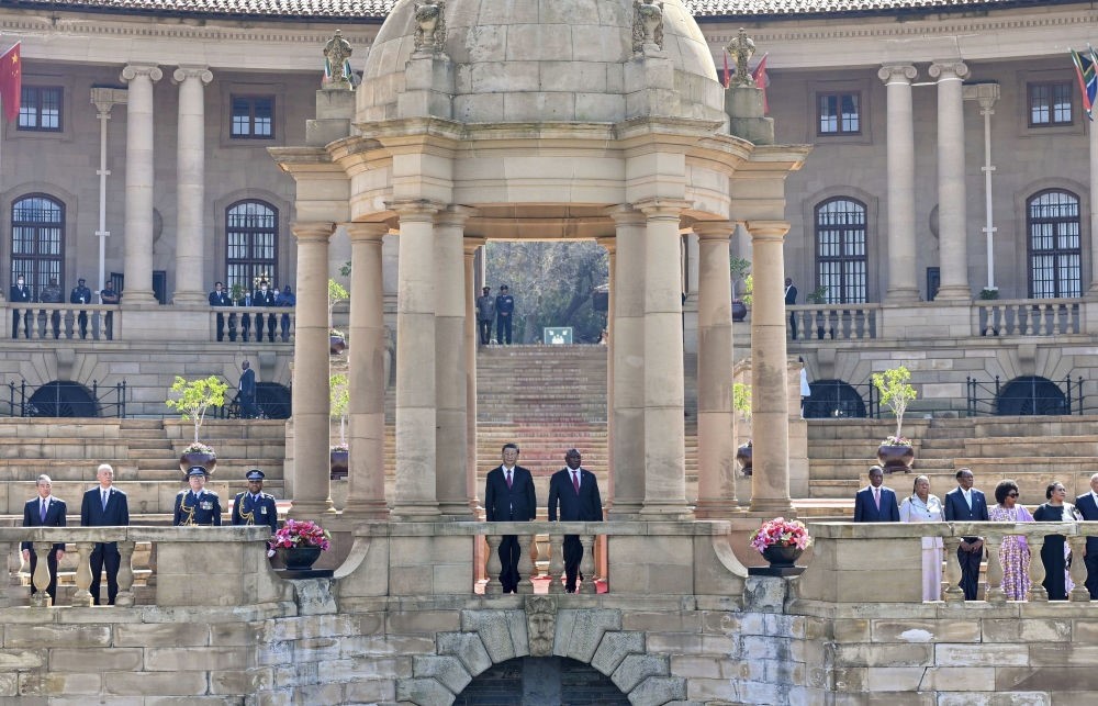 會談前,拉馬福薩在總統(tǒng)府廣場為習(xí)近平舉行歡迎儀式。