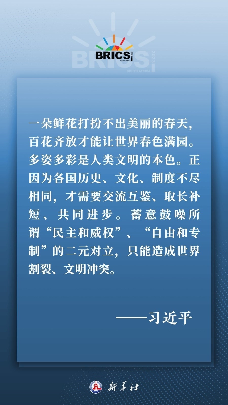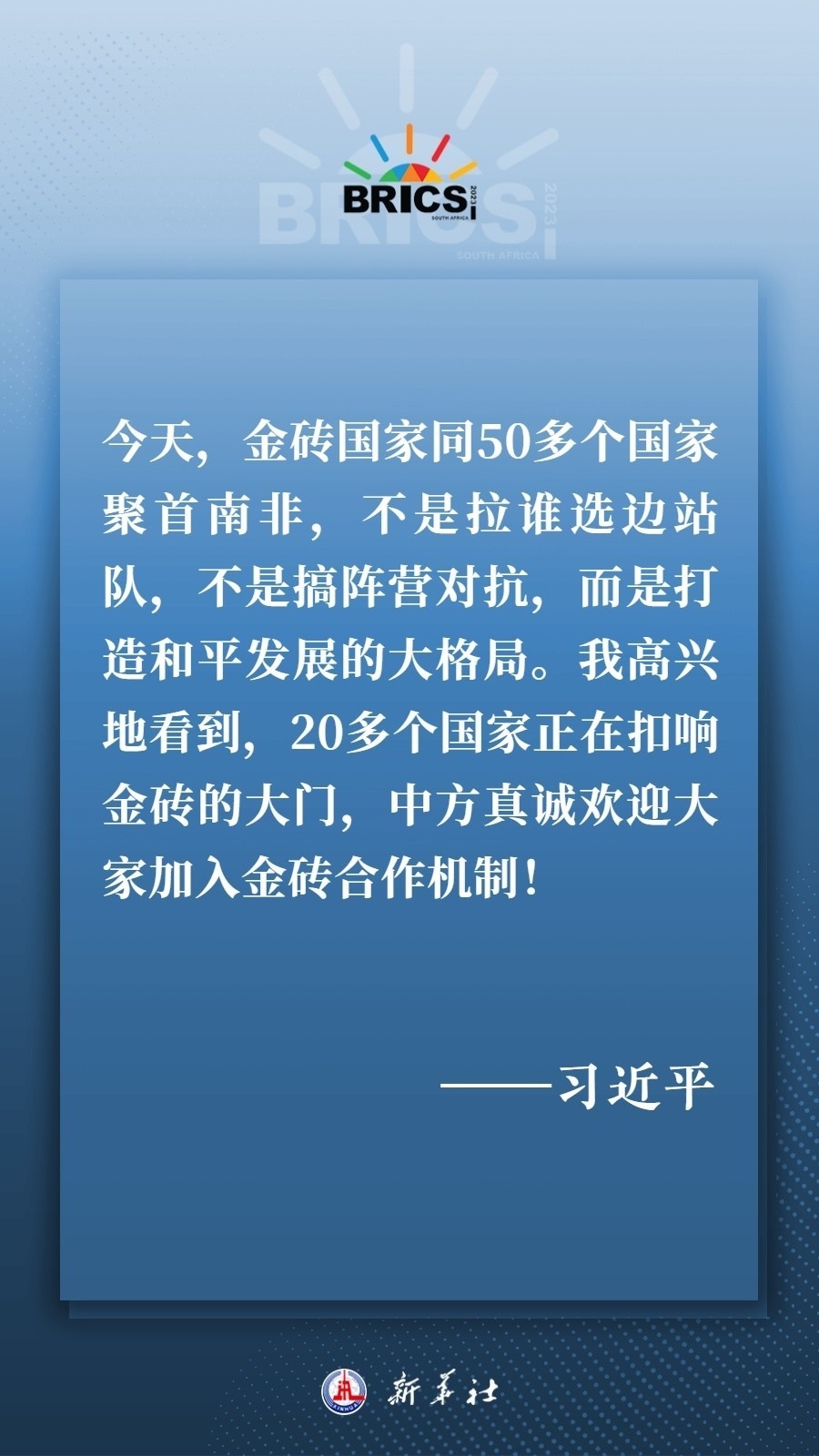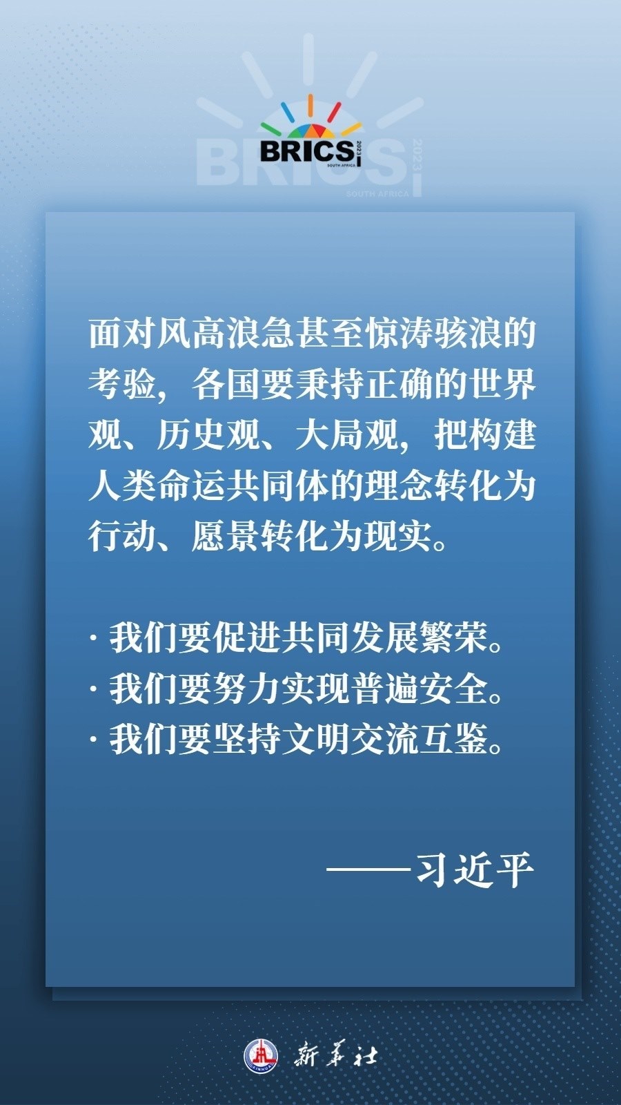 當(dāng)?shù)貢r(shí)間8月22日下午,國(guó)家主席習(xí)近平向約翰內(nèi)斯堡金磚國(guó)家工商論壇閉幕式發(fā)表致辭,為各國(guó)深化團(tuán)結(jié)合作、應(yīng)對(duì)風(fēng)險(xiǎn)挑戰(zhàn)、共建更加美好的世界指明方向——