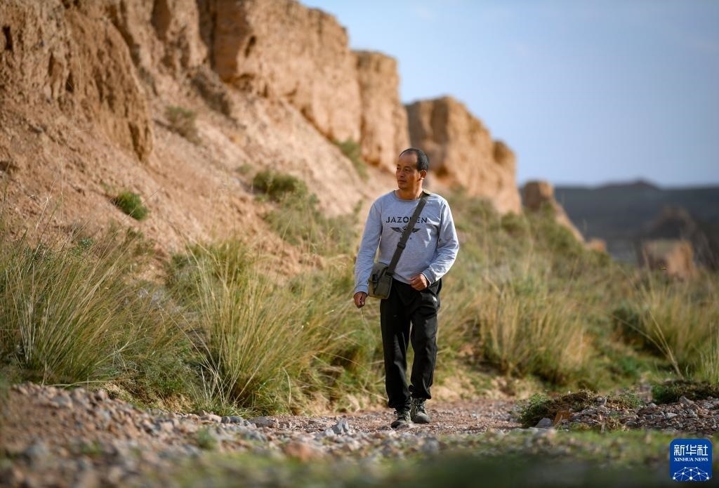 8月20日,董海寧徒步巡查賀蘭山沿線的明長城永寧段。新華社記者 馮開華 攝