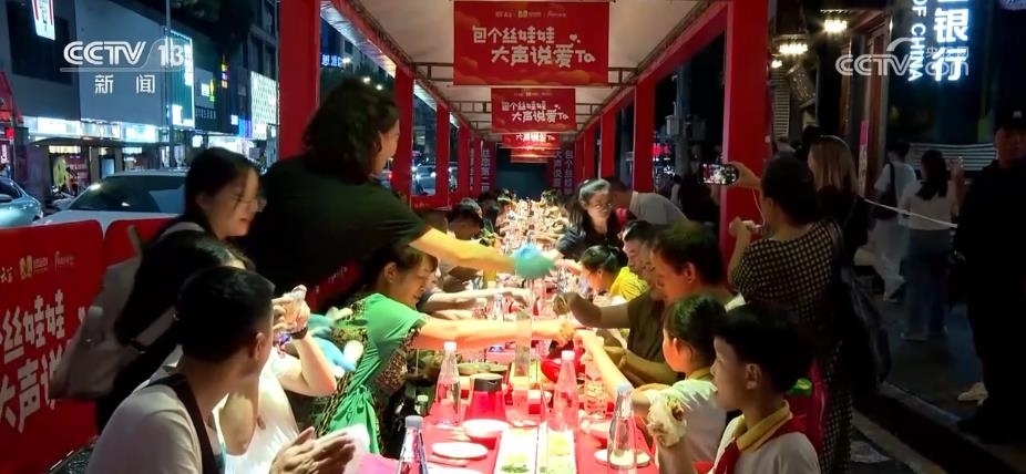 這個(gè)暑期,貴州貴陽天氣涼爽,來這里旅游還可以感受一下貴陽云巖區(qū)的長街宴。近60米的長街宴一字排開,游客圍坐在長桌邊,品嘗當(dāng)?shù)氐姆沁z美食“絲娃娃”。這是一種貴陽傳統(tǒng)小吃,別名素春卷,已有百年歷史。