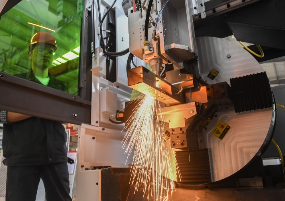 湖北武漢東湖高新區(qū),“中國(guó)光谷”。走進(jìn)華工科技產(chǎn)業(yè)股份有限公司,激光切割機(jī)行云流水般在鋼材上雕琢,噴濺出耀眼火花。公司董事長(zhǎng)馬新強(qiáng)介紹,從首套國(guó)產(chǎn)化數(shù)控激光切割機(jī),到首臺(tái)高性能光纖激光器,華工科技已創(chuàng)下60多項(xiàng)國(guó)內(nèi)行業(yè)第一。