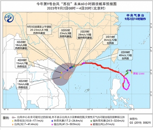 預(yù)計,“蘇拉”將以每小時10-15公里的速度向西偏南方向移動,強(qiáng)度逐漸減弱,將于3日凌晨至上午在雷州半島東部沿海登陸(20-23米/秒,8-9級),爾后進(jìn)入北部灣海面,并繼續(xù)減弱為熱帶低壓。