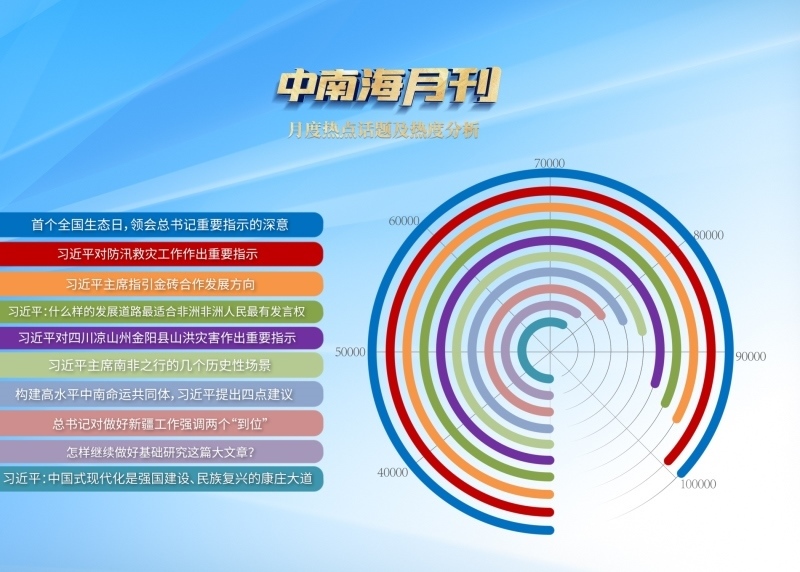 中國(guó)式現(xiàn)代化是強(qiáng)國(guó)建設(shè)、民族復(fù)興的康莊大道,康莊大道并不等于一馬平川。就像習(xí)近平總書記所強(qiáng)調(diào)的,“要把中國(guó)式現(xiàn)代化5個(gè)方面的中國(guó)特色變?yōu)槌晒?shí)踐,把鮮明特色變成獨(dú)特優(yōu)勢(shì),需要付出艱巨努力”。央視網(wǎng)“智聞”系統(tǒng)提取分析8月全網(wǎng)時(shí)政新聞熱點(diǎn)顯示,總書記對(duì)推進(jìn)中國(guó)式現(xiàn)代化的最新部署吸引全網(wǎng)目光。