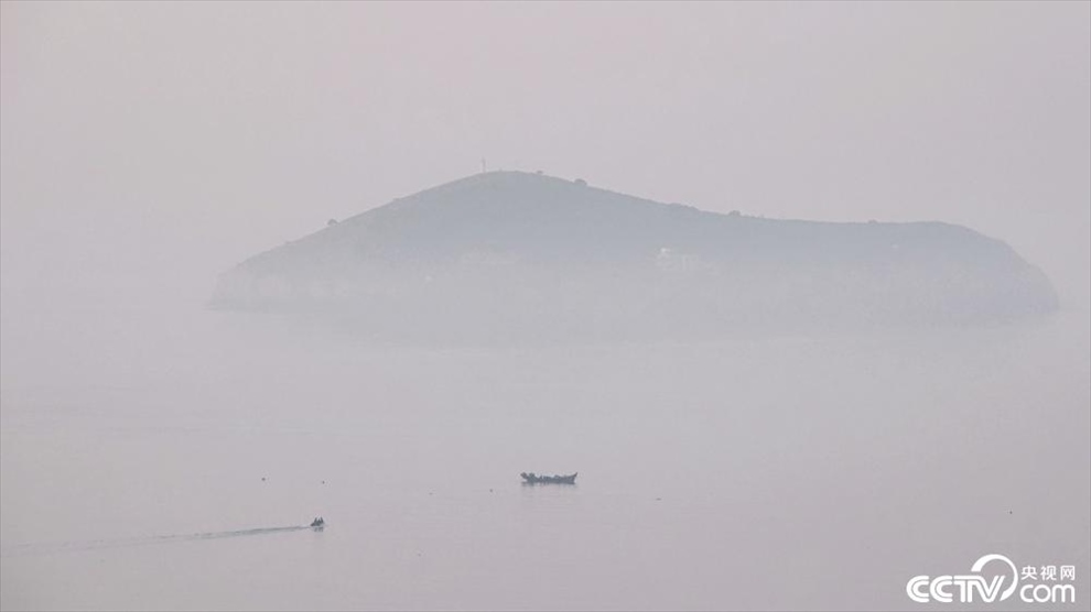 2023年9月3日清晨,大連,星海灣東部海域上空霧氣彌漫,島礁、漁船在霧中若隱若現。大連市氣象臺于當日03時57分發(fā)布了海上大霧橙色預警信號。