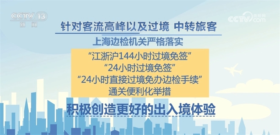 針對客流高峰以及過境、中轉旅客,上海邊檢機關嚴格落實“江浙滬144小時過境免簽”“24小時過境免簽”“24小時直接過境免辦邊檢手續(xù)”等通關便利化舉措,積極創(chuàng)造更好的出入境體驗。據統(tǒng)計,自7月1日以來,由浦東國際機場辦理江浙滬144小時過境免簽、24小時過境免簽、24小時直接過境免辦邊檢手續(xù)的旅客數量已超9萬人次。