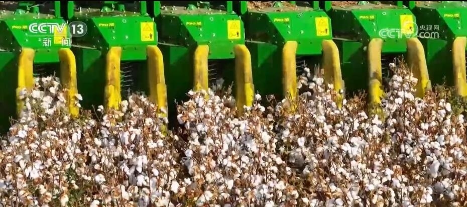 作為棉花主產(chǎn)區(qū),新疆棉花陸續(xù)進(jìn)入采收季?,F(xiàn)在您看到的是位于新疆昌吉瑪納斯縣的棉田。采棉機(jī)在田里穿行,所到之處,棉花從棉稈上脫離,氣流將棉花推送到儲(chǔ)存棉箱,采凈率高達(dá)95%以上。這樣一臺(tái)采棉機(jī)每天可采收700余畝棉花?,敿{斯是國家級(jí)優(yōu)質(zhì)商品棉生產(chǎn)基地。從播種到采收,這里的機(jī)械化,大大提高作業(yè)速度和棉花質(zhì)量。