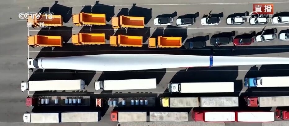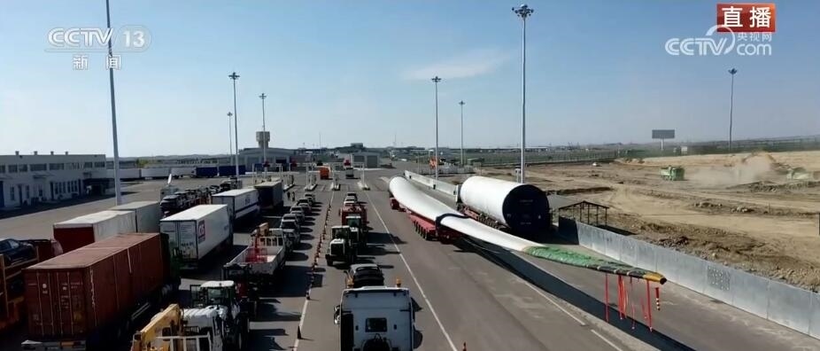 看這邊。大家知道這個(gè)龐大的家伙是什么嗎?它是風(fēng)力發(fā)電機(jī)上的一個(gè)扇葉。根據(jù)不同型號(hào),短的扇葉有三四十米,長(zhǎng)的有七八十米,龐大的塊頭也讓它在出口貨物中格外亮眼。它的這種“出”,出的不僅僅是設(shè)備,還有帶著“中國(guó)技術(shù)”的風(fēng)電項(xiàng)目。中亞地區(qū)有非常豐富的風(fēng)力資源,來(lái)自中國(guó)的風(fēng)電項(xiàng)目、風(fēng)電技術(shù)正全面助力共建“一帶一路”國(guó)家的綠色能源發(fā)展。當(dāng)?shù)卣秃jP(guān)還專門(mén)將出境通道拓寬了半米,讓這種超寬、超長(zhǎng)的大型設(shè)備能夠順利出境。