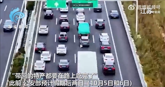 據(jù)海客新聞官方微博,10月4日,中秋國慶假期進入第6天,多地陸續(xù)迎來返程高峰。實拍全國各地高速路況,紅色車燈連成線,車隊“龜速”行駛堵成長龍。有網(wǎng)友曬出高速路況畫面表示“特意提前三天回去,沒想到又堵路上了?!?、“帶回的特產(chǎn)都要在路上吃完了”。