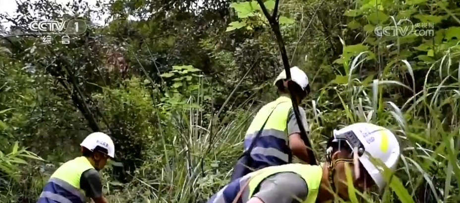 巡查途中坡陡路滑,大家要在荊棘灌木中開(kāi)出簡(jiǎn)易便道才能靠近防護(hù)網(wǎng),觀察危巖是否變形開(kāi)裂。節(jié)日里,這樣的工作每天都在重復(fù)。