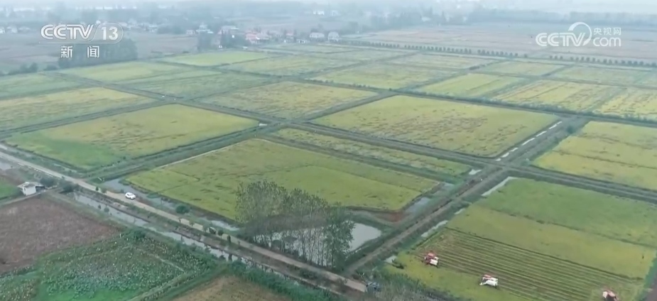 在湖南省常德市鼎城區(qū),連片的中稻迎來豐收。種糧大戶陳元普調(diào)度了3臺收割機(jī)前來搶收,很快30多畝稻田就完成了收割。