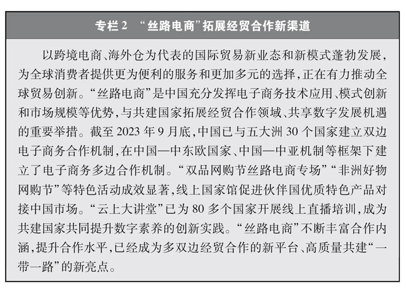 “數(shù)字絲綢之路”建設(shè)亮點(diǎn)紛呈。共建國(guó)家加強(qiáng)數(shù)字領(lǐng)域的規(guī)則標(biāo)準(zhǔn)聯(lián)通,推動(dòng)區(qū)域性數(shù)字政策協(xié)調(diào),攜手打造開(kāi)放、公平、公正、非歧視的數(shù)字發(fā)展環(huán)境。截至2022年底,中國(guó)已與17個(gè)國(guó)家簽署“數(shù)字絲綢之路”合作諒解備忘錄,與30個(gè)國(guó)家簽署電子商務(wù)合作諒解備忘錄,與18個(gè)國(guó)家和地區(qū)簽署《關(guān)于加強(qiáng)數(shù)字經(jīng)濟(jì)領(lǐng)域投資合作的諒解備忘錄》,提出并推動(dòng)達(dá)成《全球數(shù)據(jù)安全倡議》《“一帶一路”數(shù)字經(jīng)濟(jì)國(guó)際合作倡議》《中國(guó)-東盟關(guān)于建立數(shù)字經(jīng)濟(jì)合作伙伴關(guān)系的倡議》《中阿數(shù)據(jù)安全合作倡議》《“中國(guó)+中亞五國(guó)”數(shù)據(jù)安全合作倡議》《金磚國(guó)家數(shù)字經(jīng)濟(jì)伙伴關(guān)系框架》等合作倡議,牽頭制定《跨境電商標(biāo)準(zhǔn)框架》。積極推進(jìn)數(shù)字基礎(chǔ)設(shè)施互聯(lián)互通,加快建設(shè)數(shù)字交通走廊,多條國(guó)際海底光纜建設(shè)取得積極進(jìn)展,構(gòu)建起130套跨境陸纜系統(tǒng),廣泛建設(shè)5G基站、數(shù)據(jù)中心、云計(jì)算中心、智慧城市等,對(duì)傳統(tǒng)基礎(chǔ)設(shè)施如港口、鐵路、道路、能源、水利等進(jìn)行數(shù)字化升級(jí)改造,“中國(guó)-東盟信息港”、“數(shù)字化中歐班列”、中阿網(wǎng)上絲綢之路等重點(diǎn)項(xiàng)目全面推進(jìn),“數(shù)字絲路地球大數(shù)據(jù)平臺(tái)”實(shí)現(xiàn)多語(yǔ)言數(shù)據(jù)共享??臻g信息走廊建設(shè)成效顯著,中國(guó)已建成連接南亞、非洲、歐洲和美洲的衛(wèi)星電信港,中巴(西)地球資源系列遙感衛(wèi)星數(shù)據(jù)廣泛應(yīng)用于多個(gè)國(guó)家和領(lǐng)域,北斗三號(hào)全球衛(wèi)星導(dǎo)航系統(tǒng)為中歐班列、船舶海運(yùn)等領(lǐng)域提供全面服務(wù);中國(guó)與多個(gè)共建國(guó)家和地區(qū)共同研制和發(fā)射通信或遙感衛(wèi)星、建設(shè)衛(wèi)星地面接收站等空間基礎(chǔ)設(shè)施,依托聯(lián)合國(guó)空間科技教育亞太區(qū)域中心(中國(guó))為共建國(guó)家培養(yǎng)大量航天人才,積極共建中海聯(lián)合月球和深空探測(cè)中心、中阿空間碎片聯(lián)合觀測(cè)中心、瀾湄對(duì)地觀測(cè)數(shù)據(jù)合作中心、中國(guó)東盟衛(wèi)星應(yīng)用信息中心、中非衛(wèi)星遙感應(yīng)用合作中心,利用高分衛(wèi)星16米數(shù)據(jù)共享服務(wù)平臺(tái)、“一帶一路”典型氣象災(zāi)害分析及預(yù)警平臺(tái)、自然資源衛(wèi)星遙感云服務(wù)平臺(tái)等服務(wù)于更多共建國(guó)家。