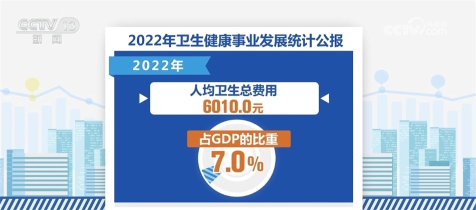2022年全國衛(wèi)生總費用初步推算為84846.7億元,其中,政府衛(wèi)生支出占28.2%,社會衛(wèi)生支出占44.8%,個人衛(wèi)生支出22914.5億元,占27.0%。人均衛(wèi)生總費用6010.0元,衛(wèi)生總費用占GDP的比重為7.0%。